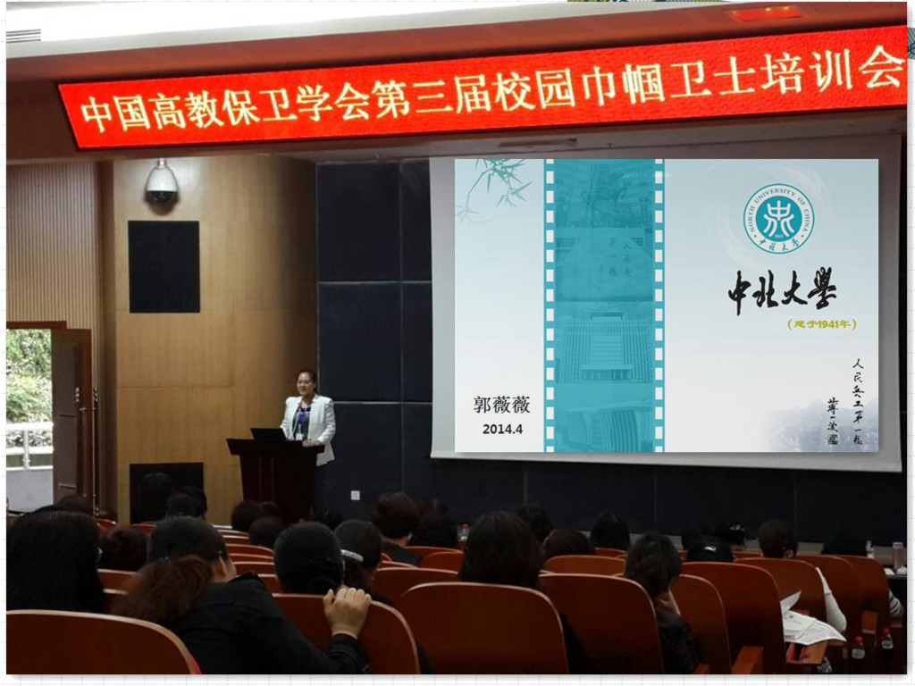 2014年4月11日,第三届校园巾帼卫士表彰大会在山城重庆召开。我校安全保卫部教育科科长郭薇薇获得表彰,并作为女保卫干部代表之一,在会议上作了《蜕练中的苦与乐--高校安保教育工作的收获与体会》主题发言。