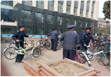 为美化校园环境,规范校园秩序,倡导大学生文明行为,3月3日下午,安全保卫部(处)交通科、教育科联同经济与管理学院13090742班级党小组,组织开展了校园自行车辆专项整治活动。班级党小组全体学生在成俊杰、郭薇薇科长的带领下,与安全保卫部工作人员一道,正式启动了以“文明骑行校园、共建美丽中北”为主题的党日活动。