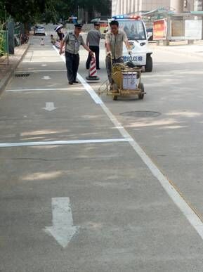 为维护我校校园交通安全,适应我校交通安全的现实情况,安全保卫处交通科全体人员在杨正民处长的带领下,从六月初开始,在全校开始选点工作,分别针对标示不清、缺乏标志,需要减速带等情况,经过现场勘查,分析确定40个点位需要增加和更换交通标志、标识;学校主干道分道线需要换新;主要部位的车位需要更新。为了使交通标志做到合理合法,六月底,又邀请太原市尖草坪区交警支队张林升副大队长、李晓华中队长来我校做指导工作,在专家的帮助下,经过论证,最终确定更新43个点位交通标志、标识;9条道路的分道线;7处消防网状线;362个车位;9条减速带。并对每个点位需要的材料进行详细的登记造表。七月初开始施工,到目前为止,已全部完工。此次完善设置我校交通设施,共增加交通标志、标识60个,43处;更新分道线3930米;更新车位362个;修补减速带76米;更新消防网状线230平米。交通科为了节省开支,自力更生,不多浪费每一分钱,特从设备公司租来专用设备,自己购买原材料,组织交通科人员和保安人员利用工作之余,加班加点在半个月的时间内圆满完成了所有安装任务,为学校节省了3万余元。