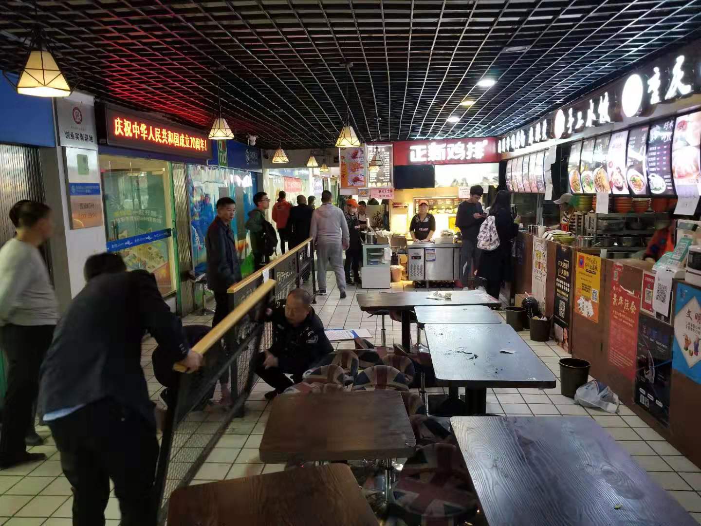 在专项整治中,检查人员按照“边检查、边整治”的原则,督促唐久超市、一层东厅、二层等商户现场清理了疏散通道内摆放的部分货物和灯箱,对不能立即整改的电源线路私拉乱接、货柜桌椅围档在通道内固定的安全隐患,下发《安全检查隐患整改意见书》限期整改。17日,安全保卫处又组织人员,复查核实整改整治情况,对仍未按要求整改的,采取强制措施清理了占用疏散通道的桌椅、围档。
