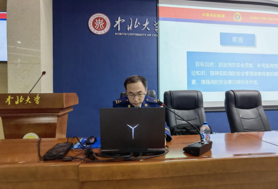 2021年11月12日,我校在瑾瑜国际会议中心学术报告厅举行“119消防宣传月”消防知识讲座。讲座由安全保卫处李兴民副处长主持,全校部分学生代表参加,授课嘉宾是太原市尖草坪区消防救援大队张恒华参谋。