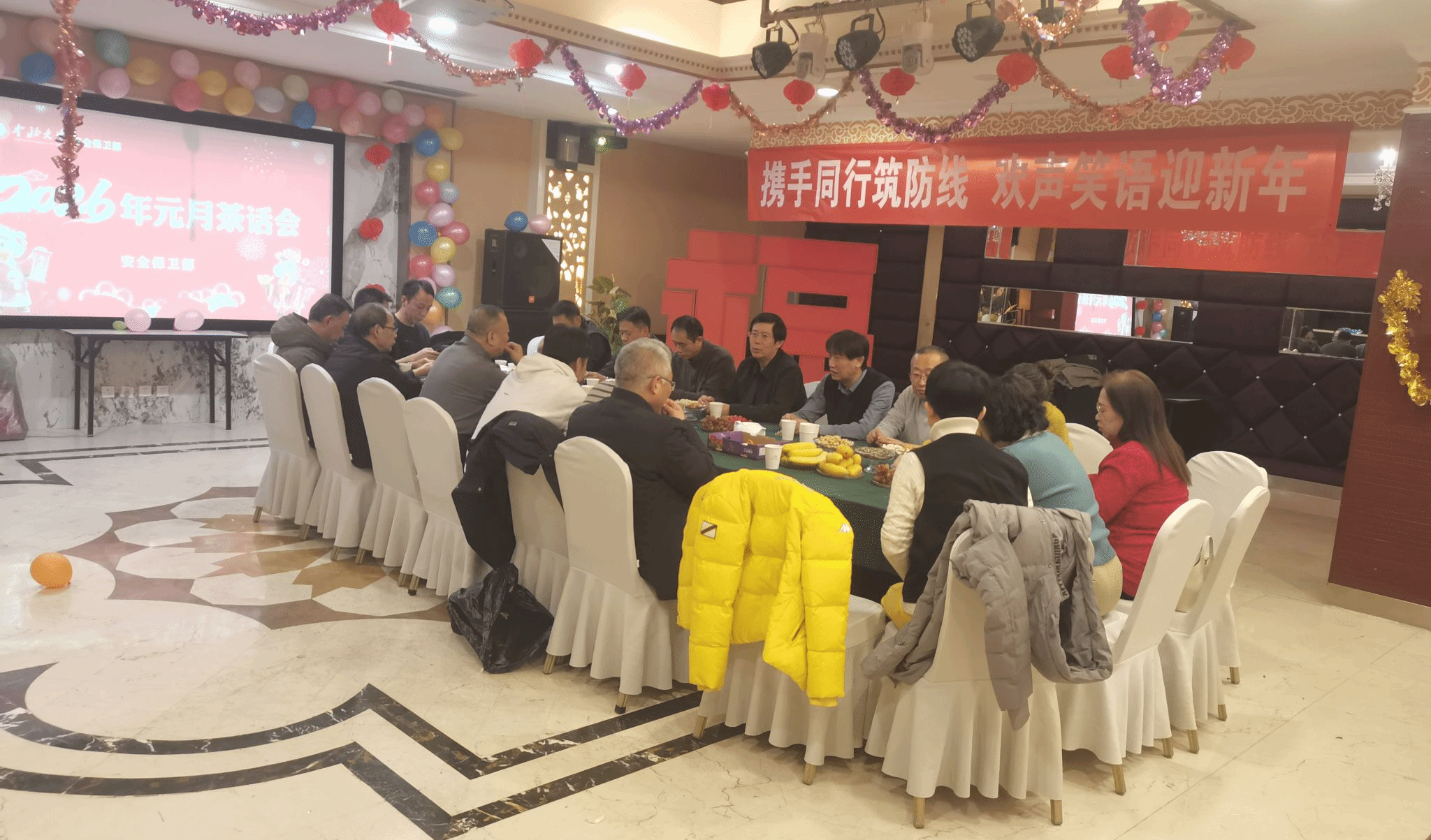 岁末迎新,温情相聚。为营造轻松愉悦的节日氛围,增进教职工间的深厚情谊,增强集体凝聚力与向心力,2026年1月9日,安全保卫部举办“携手同行筑防线,欢声笑语迎新年”茶话会。全体教职工欢聚一堂,在欢声笑语中辞旧迎新,共话未来。